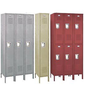 Penco Lockers with Recessed Handle Double Tier - Ready to Assemble Includes a variety of features to ensure secure, reliable and quiet use. Right-hand butt hinge is recessed into the doorframe so the hinge pin cannot be forced out or tampered with. All door openings feature mortis and tenon construction with spot welding for rigidity. Continuous door strike ensures secure closure and strikes feature padding to dampen closing noise. The recessed handle provides a smooth, catch-free front and protects padlocks from tampering. Latching channels have nylon glides to reduce sound when opening or closing. This double tier locker has 2-point latching (top and bottom). Legs add 6" to height. It's recommended to anchor lockers to floor and/or wall for safety. Powder coat finish. 0.00 L. 0.00 W. 0.00 H.