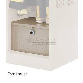 PENCO PATRIOT GEAR ; TURNOUT LOCKERS Foot Locker Made of heavy gauge, cold rolled steel with a durable powder coat finish. Foot locker front is louvered for ventilation. Includes padlockable latch and hasp (lock sold separately) for security. Reinforced lid features a continuous hinge. Lid acts as a full width bottom shelf when closed for added storage space on bottom of locker. Measures 24D x 12H.