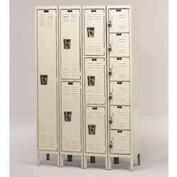 Just open the box and you have instant locker room storage. HALLOWELL Ready-Built Lockers arrive completely set-up and ready to use. Hang full-length garments in the single-tier lockers. Double-tier lockers provide individual storage for two people in one space. Both triple- and six-tier lockers provide ample storage for multiple users and are perfect where space is limited. Single-, double-, and triple-tier lockers have stainless steel recessed handles while the six-tier lockers have padlock strike plate and door pull. Each locker comes set up in 1-wide or 3-wide groups and are complete with a padlock, 6"H legs, coat hooks, and number plate.