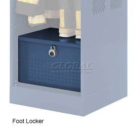 PENCO PATRIOT GEAR ; TURNOUT LOCKERS Foot Locker Made of heavy gauge, cold rolled steel with a durable powder coat finish. Foot locker front is louvered for ventilation. Includes padlockable latch and hasp (lock sold separately) for security. Reinforced lid features a continuous hinge. Lid acts as a full width bottom shelf when closed for added storage space on bottom of locker. Measures 24D x 12H.