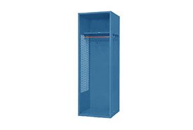 STADIUM LOCKER The right locker for municipal workers, fire fighters, athletes or any application requiring easy access to uniforms and or equipment. Lockable 11-3/4" high foot locker doubles as a bench and secure storage compartment. Open front and perforated sides create full ventilation and allocate specific storage space to each individual. Lockers outfitted with security padlockable 12"W x 14"D x 14"H box are fastened to the full width shelf. All models include full width coat rod and two coat hooks for clothing and equipment. STYLE A: Includes full width top shelf. 33.00 L. 24.00 W. 72.00 H.