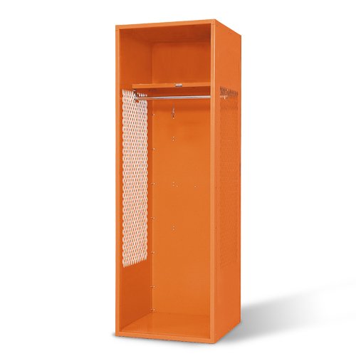 Stadium™ lockers are ideally suited for athletic team rooms or any application where easy access to uniforms and/or equipment is required. The open front and visually perforated sides create full ventilation while allocating a specific storage space to each individual. Made from prime grade mild cold rolled sheet steel, powder coat finish and painted the same color inside and out. Each locker is 72"H x 24"W with your choice of 18 or 24 depths and 4 different configurations.